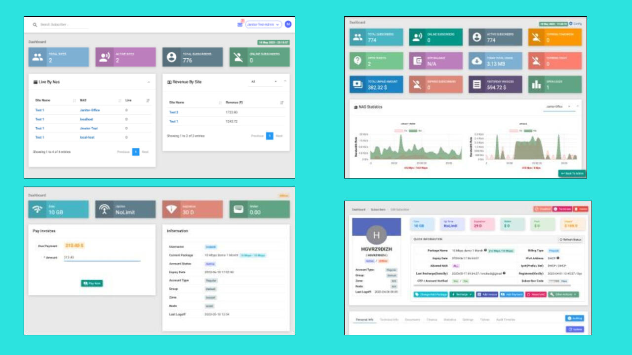 Our powerful white-label platform streamlines ISP operations with a full suite of automation tools, allowing you to focus on growing your business.✅ Automated Billing – Effortlessly manage invoicing, payments, and subscriptions.✅ Prepaid Packages – Offer flexible, prepaid plans for your customers.✅ Intuitive Helpdesk & Reporting– Simplify customer support with an integrated ticketing system.✅ CRM & Customer Management Portal– Organize customer data, track interactions, and improve engagement.✅ RADIUS Provisioning – Seamless authentication and access control for user management.✅ IPv4 & IPv6 Management & Reporting – Optimize and monitor your IP resources effectively.Transform your ISP operations with automation—efficient, scalable, and reliable.